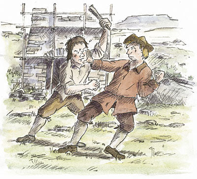 Interpretation panel illustration for the Devils Bridge story, Kirkby Lonsdale